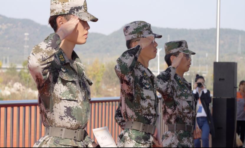 大会由杜鹏主持。典礼在隆重的奏唱国歌仪式中拉开帷幕。台上一分钟,台下十年功。2020级新生们伴着慷慨激昂的分列式进行曲、迈着整齐划一的步伐,向我们展示了为期5天的军训成果,展示了青岛基地首批新生的青春活力与昂阳风貌。列队行进完成,军训方队组合成新的队形,“山东工艺,天下第一;青岛基地,无人能敌”的口号贯彻云霄,让在场嘉宾和老师再次看到了山工艺内在迸发的力量,听到了新同学整齐豪迈的声音。