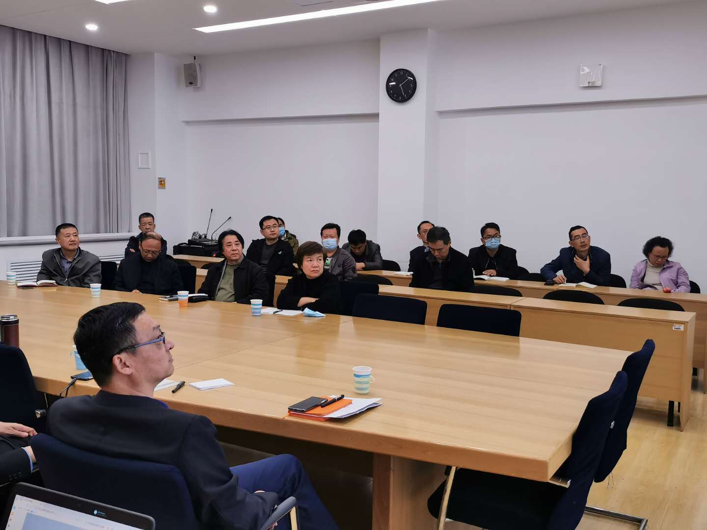 校领导苗登宇、董占军、韩文涛,疫情防控领导小组各成员单位负责人,各教学单位主要负责人参加会议。(院长办公室)
