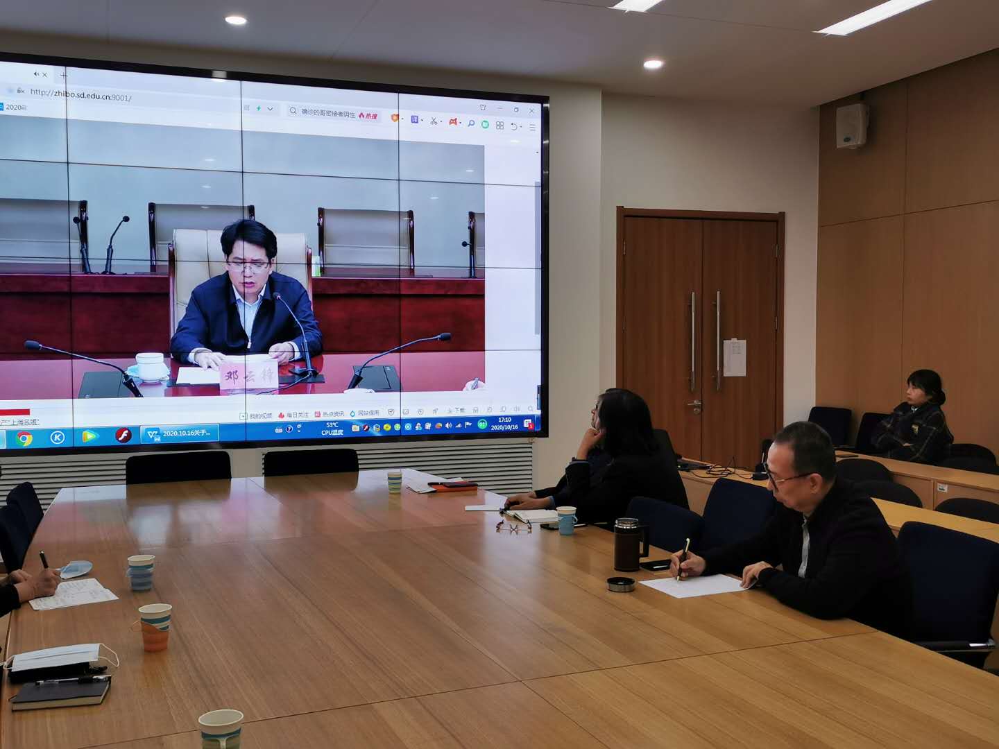 10月16日下午,yl8cc永利官网院长潘鲁生参加省教育厅召开的全省学校疫情防控工作会议,深入学习贯彻习近平总书记在全国抗击新冠肺炎疫情表彰大会上的重要讲话精神和关于青岛疫情防控工作的重要指示精神。省委高校工委常务副书记,省教育厅党组书记、厅长邓云锋主持会议并讲话。