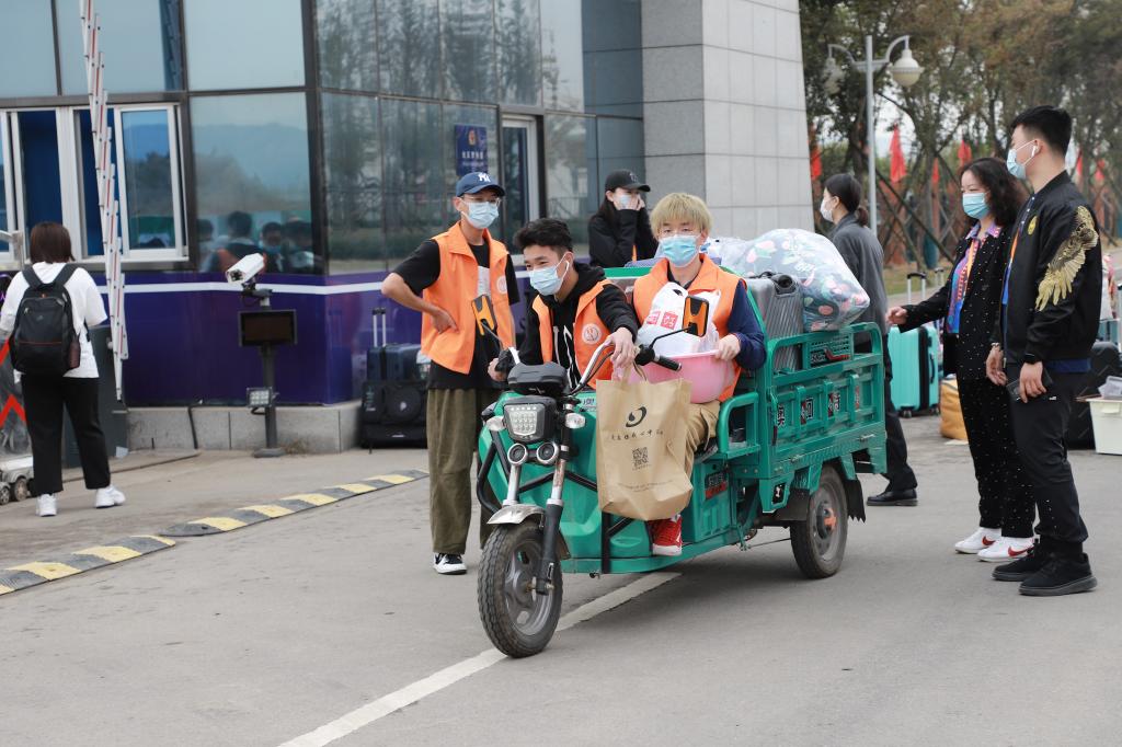 各部门密切配合,迎新现场秩序良好。为统筹做好校园疫情防控工作,确保新生平安顺利有序入学,学校妥善部署,从入校第一步就做好分流,减少人员聚集。基地相关职能部门、各专业任课教师和辅导员也全程参与迎新工作。早上6点,青岛基地教师带领学生志愿者奔赴青岛西站、西海岸汽车总站和黄岛汽车总站迎接新生。校内,迎新志愿者穿梭于楼宇之间,引导新生从校门口至宿舍,尽全力帮助新生顺利入学。志愿者们衔接有序、高效运转、全天无休地接送新生,接人引路、报到登记、缴费查询、问题咨询、搬运行李;校门口、报到点、宿舍门前都留下了他们的欢声笑语和矫健身影。