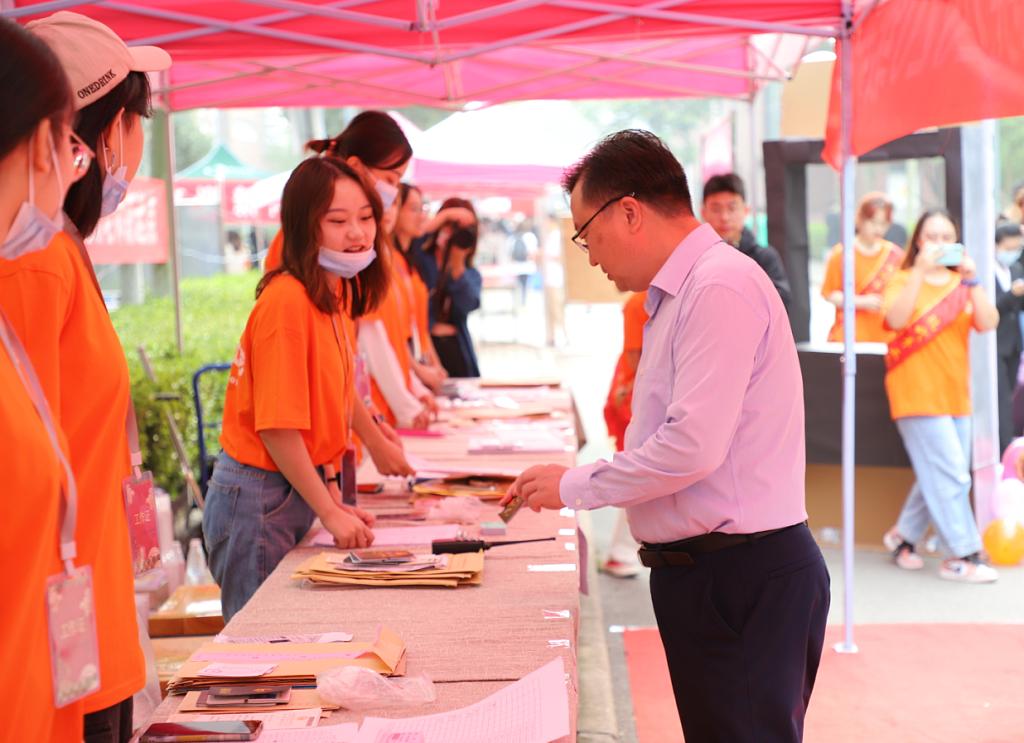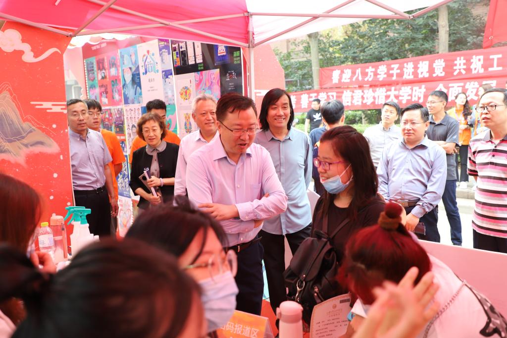 上午九时,校领导何思清、苗登宇、李新、苗新民、董占军、韩世春来到迎新现场,看望迎新一线的工作人员和志愿者,并与现场报到的新生和家长亲切交谈。