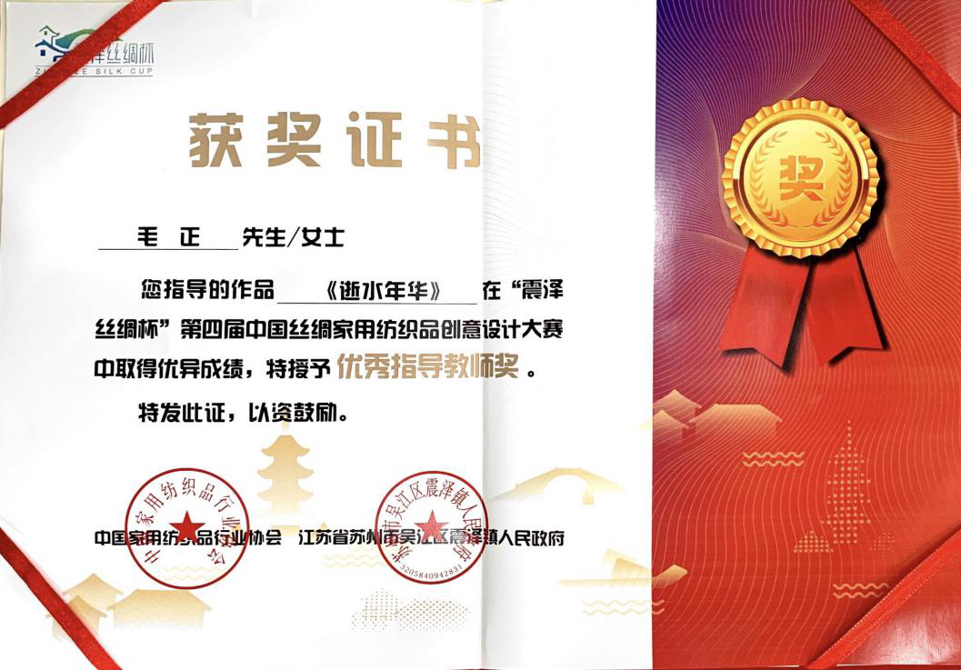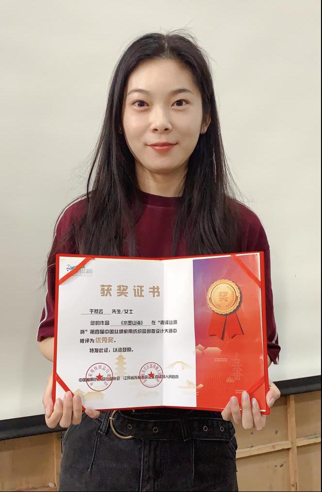 在现代手工艺术学院毛正老师的指导下,2017级纤维染织专业学生马心悦同学喜获银奖1项、于然云同学喜获优秀奖1项,以及入围奖一项。毛正老师获得“优秀指导教师”称号。(yl8cc永利官网现代手工艺术学院)