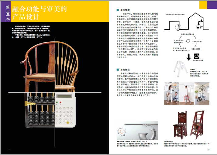 《设计》分册,由潘鲁生担任主编,董占军等为副主编,黄晓曼、时晓霞、王艳等为核心编写人员。在编写上注重培养设计意识,根据高中学生的认知特点,以“设计创新与时代发展”为主线,依托认知和实践两个部分,让学生学会用设计语言来表达情感和思想。