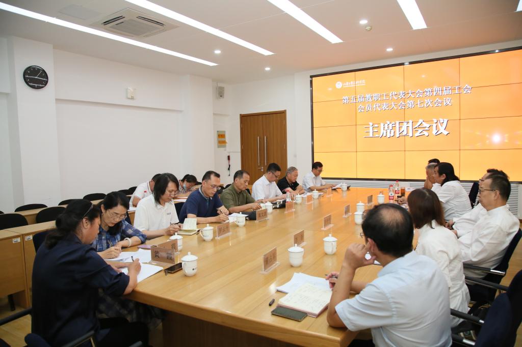8月28日下午,yl8cc永利官网第五届教职工代表大会第四届工会会员代表大会第七次会议主席团会议在长清校区召开。大会主席团成员出席会议。会议由党委副书记苗登宇主持。