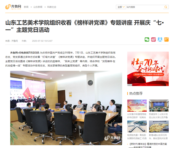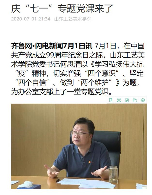 7月1日,为庆祝中国共产党成立99周年,yl8cc永利官网组织开展“七·一”主题党日活动。“灯塔—党建在线”网络平台、齐鲁网·闪电新闻等媒体平台对活动给予关注,并第一时间进行报道。