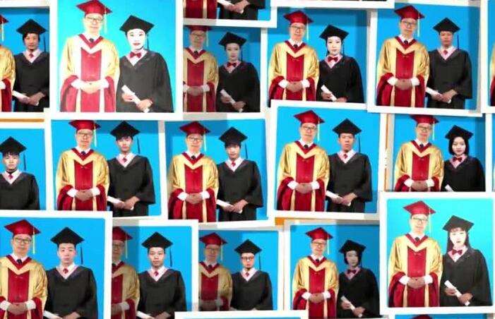 毕业典礼后,2020届毕业生线上学位授予仪式举行。本次毕业典礼启用了“云拨穗”“云合影”的方式。同学们通过扫描直播屏幕上的二维码,输入自己的姓名和学号,可以清晰地看到,院长潘鲁生教授身穿导师服,亲自为学生拨动流苏,“隔空”完成拨穗礼。同时,同学们还可下载自己的学位证书、毕业照,以及与潘鲁生院长的合影照片,让不能返校的毕业生也体验到庄严神圣的一刻、不留任何遗憾。