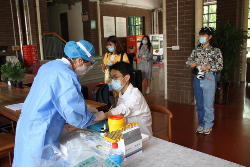 报到现场,学生亮出健康码,接受体温测量和核验身份,领取学校配发的健康礼包,省外返校学生接受核酸和血清抗体检测后入住宿舍,完成报到流程。各项工作有条不紊地按照既定工作方案顺利进行,秩序井然。