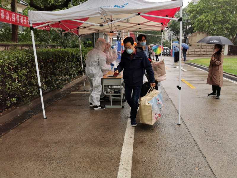 随后,学生进入消杀专区,在工作人员的帮助下进个人及行李物品消杀消毒,大件行李将交由工作人员帮忙搬运。