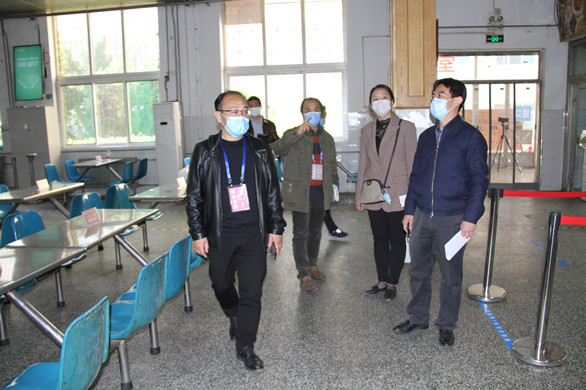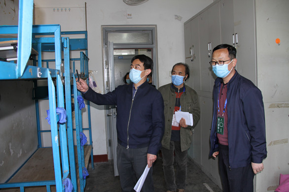 随后,检查组深入校园实地查看疫情防控开学准备的实施情况。检查组先后来到校园出入口、各测温点、食堂、学生公寓、教室、应急隔离室等重点场所,详细检查各功能场所安全情况,现场询问师生信息摸排、物资储备数量、学生入校流程、应急处理等问题,检查过程严格、细致。