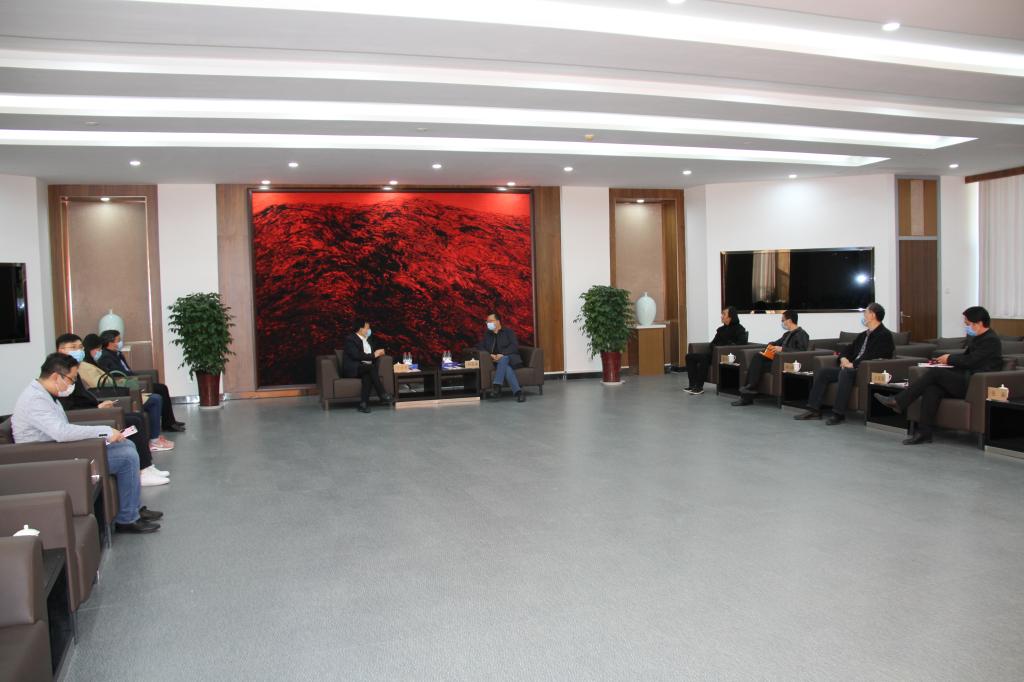 4月21日下午,济宁市委宣传部副部长于庆军、济宁市委宣传部文产科科长高军锋、济宁高新区党工委宣传部副部长孙晓、山东媒世界文化发展有限公司总经理闫升、济宁灵动文化传媒有限公司总经理仇令一行来永利官网调研。党委书记何思清、党委副书记苗登宇会见来宾,就双方文化创意产品设计与合作进行会谈。