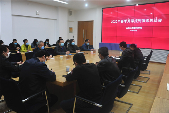 何思清、潘鲁生等校领导认真观摩演练,了解疫情防控准备和应急处置流程,仔细询问工作细节。演练结束后,学校组织召开2020年春季开学报到演练总结会。