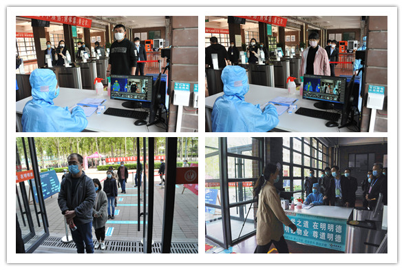学生在公寓外依次排队,经红外线设备检测后方可进入公寓;体温异常者,工作人员引导其由专用通道转移至临时留观区进行体温复测及登记;公寓入口进行现场消毒。两校区设置单独隔离宿舍。
