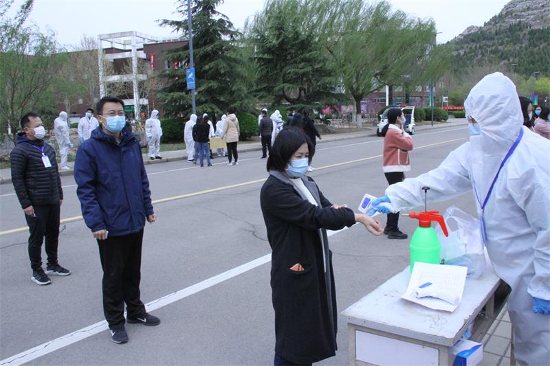 为贯彻落实山东省关于做好疫情防控开学准备工作的各项要求,做好开学准备和开学后疫情防控工作,根据学校疫情处置工作领导小组统一部署,4月1日,学校在长清校区组织开展2020年春季学期开学演练,切实提升疫情应急处置能力。党委副书记苗登宇指导演练。
