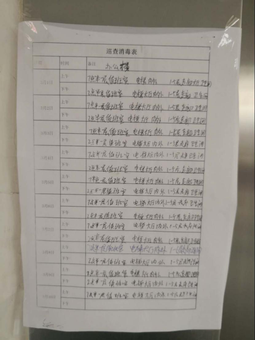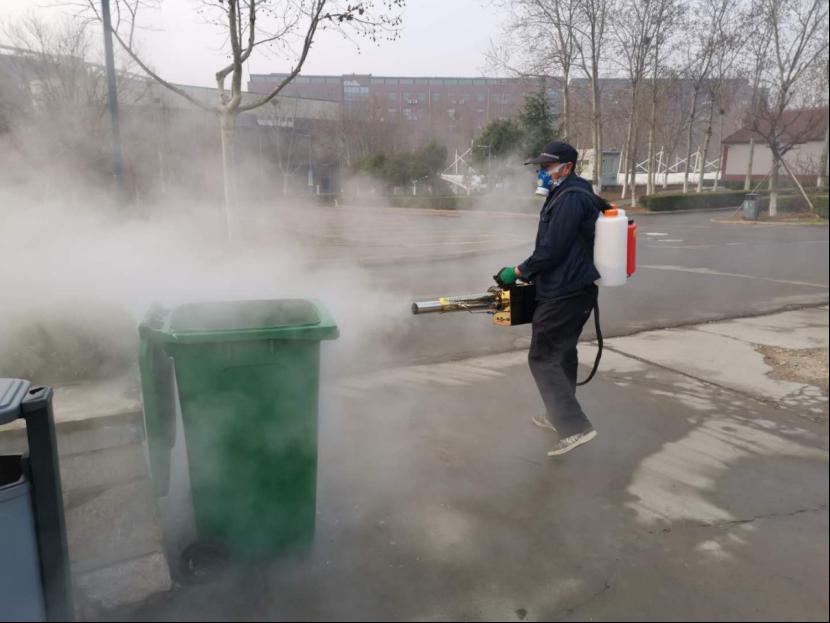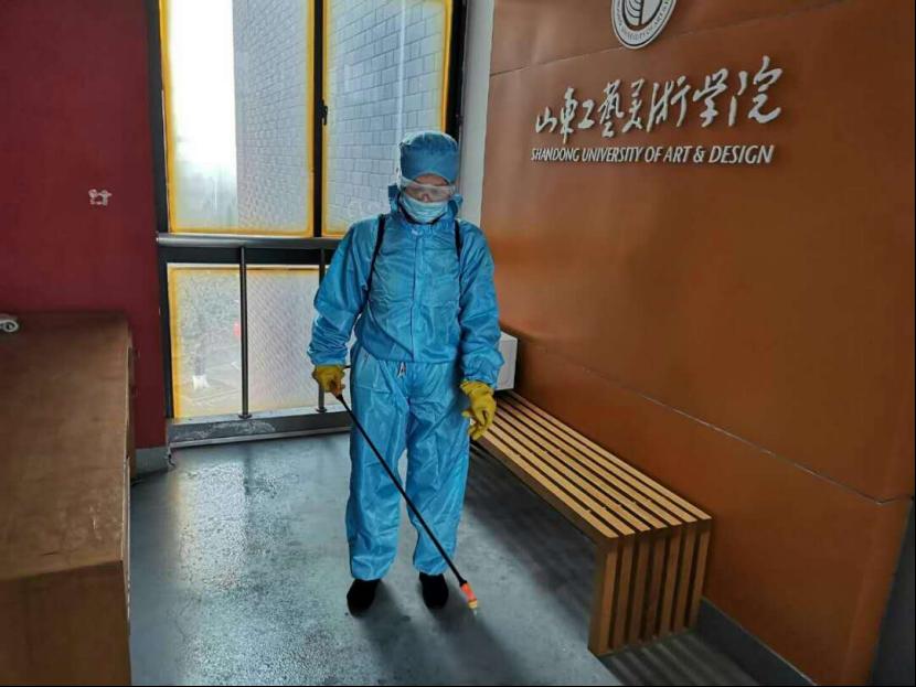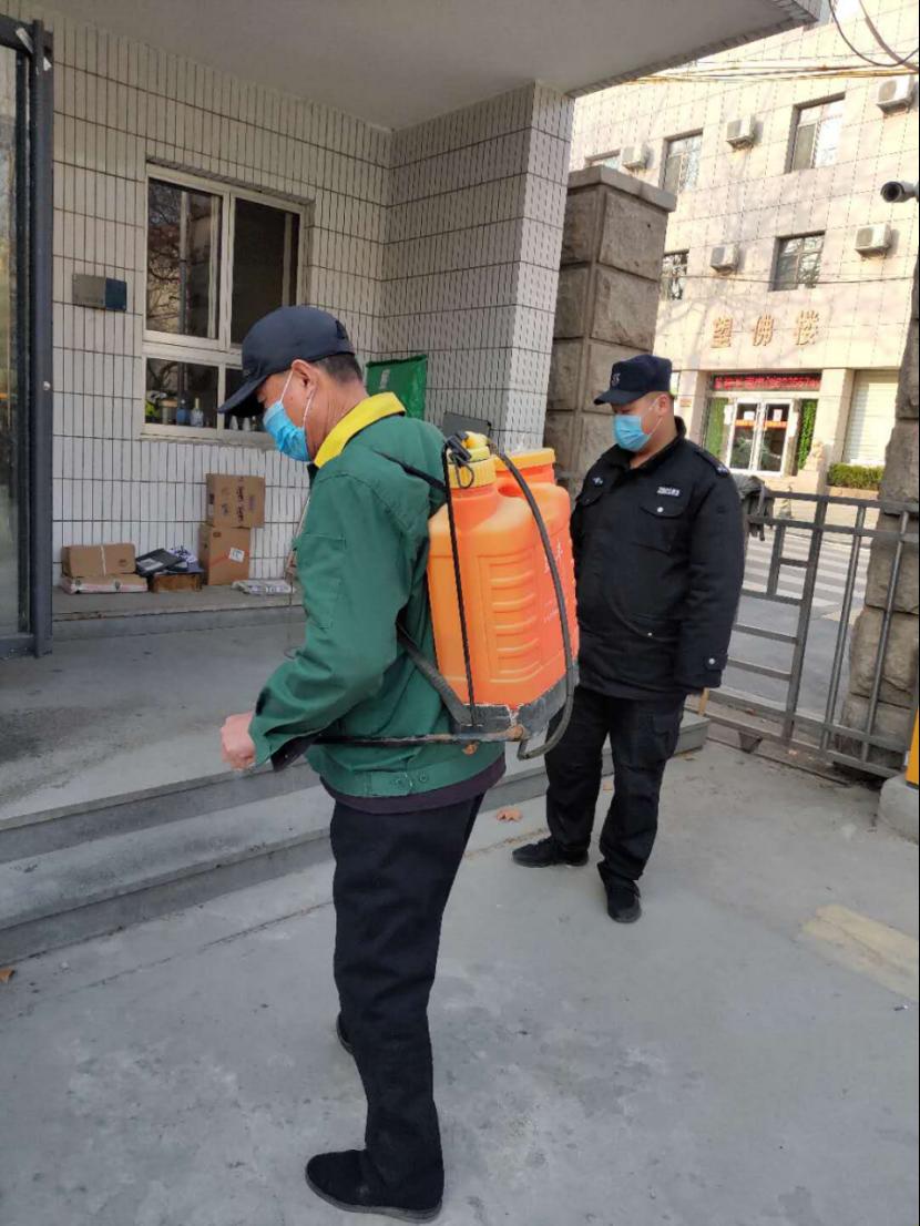 为遏制新型冠状病毒的发生和传播,按照“环境卫生不留死角,清洁消毒不留空白”的工作要求,加大校园环境卫生整治力度,全方位改善学校环境卫生条件,制定消杀方案,安排物业公司坚持每日对两校区教学楼、学生宿舍、食堂、电梯轿厢、楼道、厕所、垃圾站、垃圾箱(桶)等重点区域和场所进行消毒,并按时填写物业项目防疫值班杀毒台账。同时要求所有工作人员穿工作服戴口罩和手套上班,双测温两报告;各区域卫生保洁工作正常进行,并设置废弃口罩专用收集容器,把消毒工作落实到每一个角落。千佛山校区后勤管理办公室根据学校和后勤疫情防控各项措施要求和千佛山校区实际情况,自2019年1月27日始就开始利用库存备用84消毒液对校区及家属区开始了消毒防疫工作。根据家属区和校区寒假期间人员流动密集度不同的特点采取不同程度的消杀频次,校区对没有师生加值班工作的楼宇采取封闭式管理,开放楼宇每日消杀一次并在大门处做好登记;家属区人员密集流动量大,每日消杀两次,各楼洞皆有消杀记录,同时与片区居委会密切保持联系,互通有无全力做好安全保障。