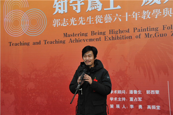 山东省美术家协会主席、山东省美术馆馆长张望,艺术家代表单应桂在致辞中,向郭志光先生表示热烈祝贺。他们表示,郭志光先生从艺从教六十年,成绩斐然,在教育方面桃李满天下,在艺术创作方面蜚声国内外,是中国大写意花鸟画文脉传承的典范,令人钦佩。北京画院青年画家韩斌作为郭志光先生的学生代表,对恩师教学与学术成果展的开幕送上真诚的祝福,对母校以及恩师的培养表示了诚挚的感谢。