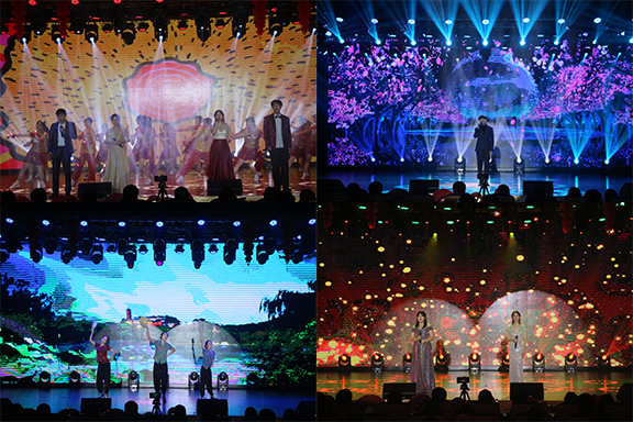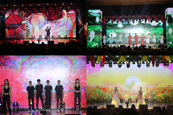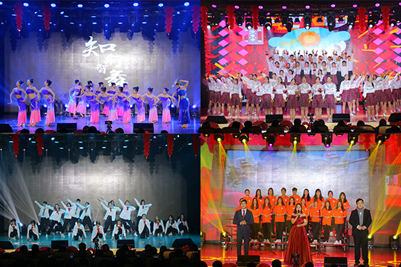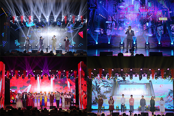 晚会伊始,开场歌舞《青春畅想》唱出了工美学子的蓬勃朝气,瞬间点燃了全场的气氛。随后,活力动感的《Just Dancing》、悠扬空灵的《贝加尔湖畔》、婀娜多姿的《迟暮花开》等一系列的歌舞节目,美轮美奂,尽显当代大学生的青春活力。其间,大学生匠心合唱团带来的《稻香》和《新年快乐》,表达了对未来的期盼,展现了青年一代紧跟时代、奋发图强的精神;新颖别致的朗诵节目《再别康桥》在展示各地方言魅力的同时,更诠释了“五湖四海是一家,我们都是工美人”的深厚情谊。此外,老师们一改往日的严肃形象,带来的合唱《我的战鹰绕着宝岛飞》和舞蹈《茉莉花开》柔情与火热并进、走秀《朝气蓬勃工美人》时尚与创新兼备,全方位地展现了永利官网师生的精神风貌,将全场的气氛引向高潮。最后,晚会在歌曲《新的天地》中圆满落幕。