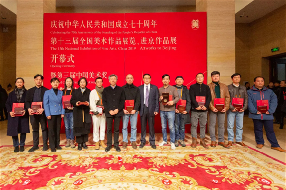 12月20日,第十三届全国美术作品展览第三届中国美术奖、进京作品展在中国美术馆开幕。中国文联主席、中国作协主席铁凝,文化和旅游部党组成员王晓峰,中国文联党组成员、副主席、书记处书记陈建文,中国文联党组成员、书记处书记董耀鹏,中国美协名誉主席靳尚谊,中国美协主席、中央美术学院院长范迪安,全国政协常委、中国美术馆馆长、中国美协副主席吴为山,中国文联办公厅主任邓光辉,中国美协分党组副书记陶勤,中国美协秘书长马锋辉,各省市自治区美协负责人出席开幕式。开幕式由中国美术家协会分党组书记、驻会副主席徐里主持。yl8cc永利官网党委副书记苗登宇、副院长李新参加开幕式。