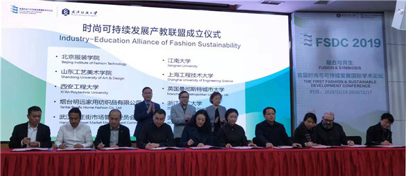 12月14日上午,服装学院副院长李杰代表学校参加“中国时尚可持续发展联盟”签约仪式。李新应邀出席首届时尚与可持续发展国际学术论坛,并上台见证签约仪式。
