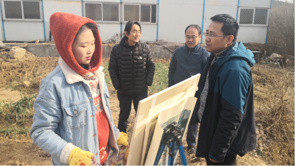 11月29日上午,副院长董占军到数字艺术与传媒学院2019级戏剧影视美术设计专业色彩写生现场,与师生进行交流。