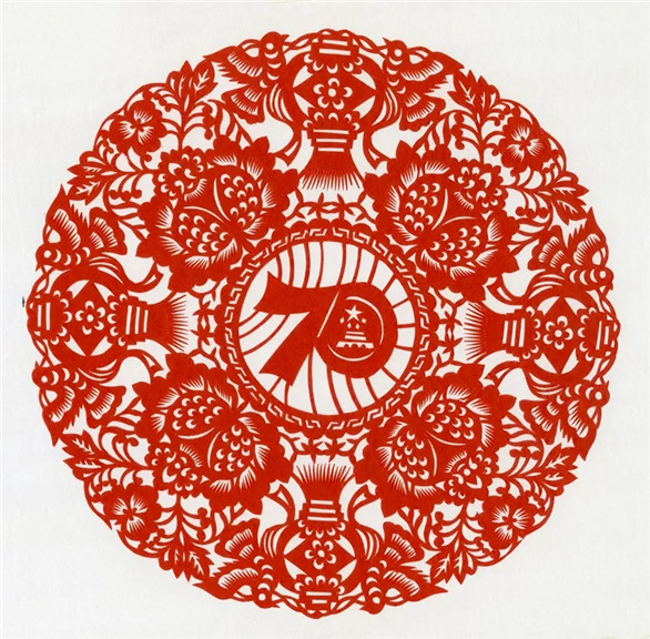 庆祝中华人民共和国成立70周年国庆招待会民间剪纸纪念品《普天同庆》 董林美制作
