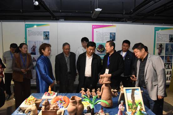 此次教学成果汇报展共遴选出200余件(套)优秀作品参加创作成果展。展出的泥(面)塑作品内容丰富,有经典传神的神话和历史人物,有栩栩如生的飞禽走兽、花鸟鱼虫,还有生动夸张的卡通和漫画形象;作品形式多样,有课堂习作、主题创作、以及衍生品等系列创作作品。学员们热情地向领导们介绍自己的从艺经历、技艺特色和代表作品。王廷琦对学员的优秀作品以及衍生品开发设计表示肯定,并提出技艺要传承、内容要创新,要关注生活、关注现代人的审美,做一些贴近生活、符合市场需求的产品;并且要开拓创新,不断提高非遗产品的市场竞争力,促进当地经济发展。