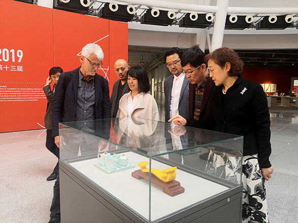会见后,在副院长李新、教务处处长孙磊和建筑与景观设计学院院长邵力民的陪同下,本德·鲁道夫教授一行参观了美术馆、博物馆和民艺馆,并参观了正在永利官网展出的第十三届全国美展艺术设计作品展。