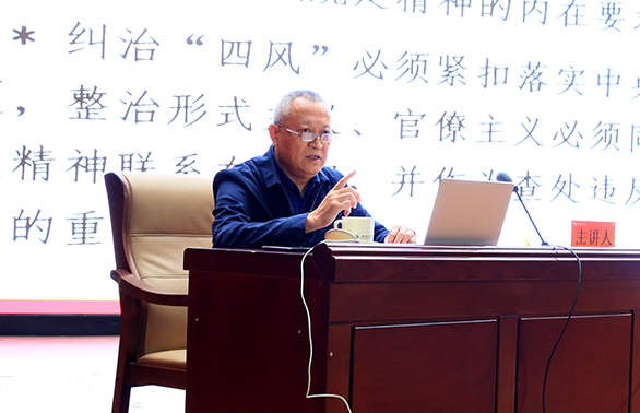 针对落实中央八项规定精神,坚决整治形式主义、官僚主义。苗新民通过深入浅出的理论讲解和生动形象的案例分析,详细介绍了中央八项规定的主要内容,重点解读了中央八项规定精神,深入剖析了违反中央八项规定精神的问题,全面阐释了贯彻落实中央八项规定精神的具体要求;列举并分析了“四风”问题的表现形式和重大危害;剖析了永利官网“四风”方面存在的“软散懒拖油躲飘缺”问题。苗新民指出,党员干部特别是党员领导干部,要防范“四风”问题的发生,要始终坚持理想信念,做遵守党的政治纪律的表率;始终坚持以人民为中心,做密切联系群众的表率;始终坚持人生“三观”,做践行正确政绩观的表率;始终坚持实事求是,做求真务实的表率;始终保持优良作风,做艰苦奋斗的表率;始终坚持守职有责,做勇于担当的表率;始终坚持锐意进取,做开拓创新的表率;始终坚持终身学习,做理论联系实际的表率;始终坚持遵纪守法,做依规依纪依法办事的表率;始终坚持正确导向,做科学选人用人的表率;始终坚持发扬民主,做贯彻民主集中制的表率;始终坚持拒腐防变,做廉洁自律的表率。