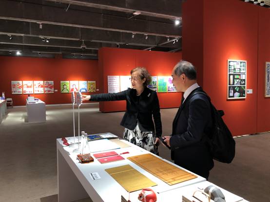 会谈后,李新陪同来宾参观了正在学校美术馆展出的第十三届全国美展艺术设计作品展及博物馆。