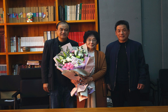 王映雪表示,董凤歧副教授团队制作庆祝中华人民共和国70周年国庆招待会民族人物面塑,为国家庆典活动做出了贡献,她代表山东省民协对制作团队成员表示慰问。向董凤歧献上了鲜花。