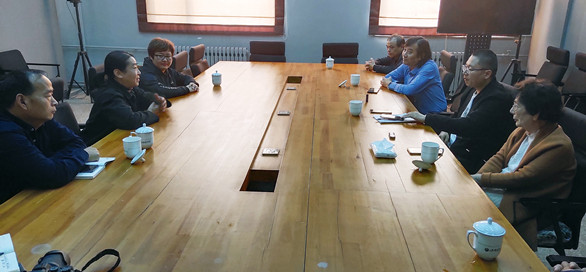 10月22日,山东省民协常务副主席王映雪、济南市民协驻会副主席张佃水、市民协秘书长都玉梅来永利官网慰问国庆招待会董凤歧面塑创作团队。党委副书记苗登宇会见来宾一行。