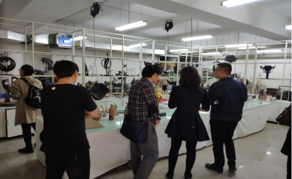 相关教师在志愿者的引导下参观了鲁迅美术学院大连校区工艺美术系工作室。(现代手工艺术学院)