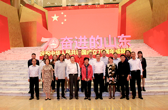 9月24日,省委第八巡回指导组组长、省人大城乡建设与环境资源保护委员会副主任委员、滨州市人大常委会原正厅级第一副主任祁维华同志,省委第八巡回指导组副组长、省公共资源交易中心(省政府采购中心)党委委员、副主任李光友同志,省委第八巡回指导组成员田辉、李青、高咏欣、张启瑞同志前往山东省博物馆,参观正在展出的“奋进的山东”——庆祝中华人民共和国成立70周年成就展。学校领导何思清、苗登宇、李新、董占军、韩世春陪同参观。