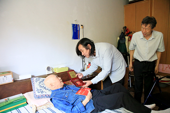 学校党委高度重视,对永利官网建国前参加工作的老同志走访慰问工作进行了部署。9月23日,党委副书记苗登宇走访慰问了永利官网7位离休老干部,向他们转发了党和国家颁发给他们的纪念章,代表学校送去慰问金、慰问品,感谢他们为祖国建设和学校发展做出的贡献。
