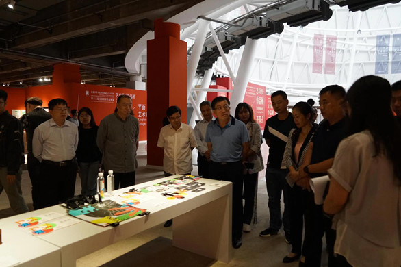 唐海军一行观看了正在展出的“第十三届全国美术作品展览艺术设计作品展”。来访嘉宾在展品展柜前认真观看,不时驻足讨论交流。大家纷纷表示此次观展,从整体上增强了对设计的认识与理解,企业在今后的发展过程中会多与yl8cc永利官网的师生沟通交流,改变传统观念,让设计引领生活。