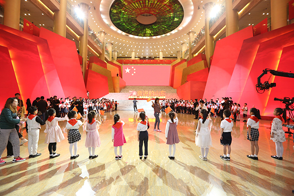 开展仪式在童声清唱《我爱你中国》的歌声中拉开帷幕,来自各行各业的近400名群众代表挥舞手中国旗,与少年儿童一起合唱。伴随童声结束,省领导与现场观众齐声高唱《歌唱祖国》,表达对祖国母亲的热爱和祝福。