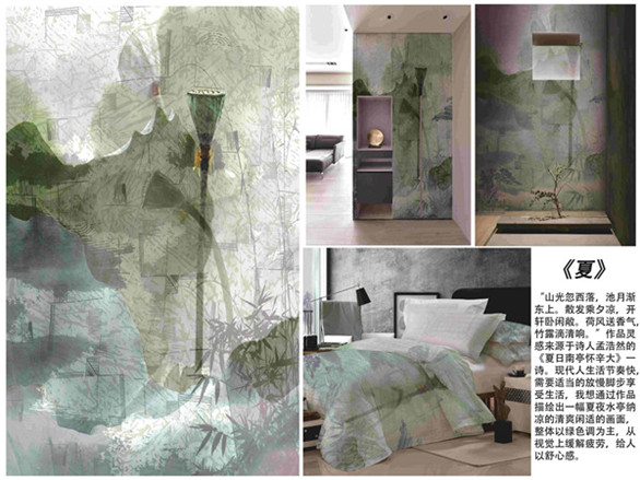 2019“海宁家纺杯”创意设计大赛以“国风·大观”为主题,旨在以中国的文化之风为核心,以东方的艺术之彩为手段,以展现中国之风格的国际时尚化为最终目的,展开系列性的创新、创意、创美的家用纺织品设计。以大设计、新视野、高品位的设计创意,营造出中国之风韵的诗意的栖居生活方式。大赛经过17载成长,承载了更为深厚的底蕴,也对参赛设计师们提出了新时代下的全新思辨主题。传统和现代,中华魂和国际范,共同碰撞,产生2019“海宁家纺杯”中国国际家用纺织品创意大赛的作品。