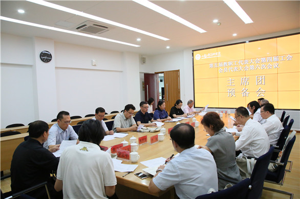 8月30日上午, yl8cc永利官网第五届教职工代表大会第四届工会会员代表大会第六次会议主席团预备会议在长清校区召开。校领导何思清、潘鲁生、苗登宇、李新、苗新民、董占军、韩世春出席会议。潘鲁生主持会议。
