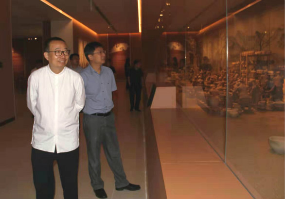 上午,潘鲁生一行在淄博市委副书记马晓磊等陪同下,参观了淄博陶瓷琉璃国艺馆,详细了解了国艺馆研发、设计、展览、交易的流程。潘鲁生对国艺馆的展陈作品和制作工艺给予了高度评价。他指出,习近平总书记最近到敦煌调研,实地考察文物保护和研究、弘扬优秀历史文化等情况,就文化发展、文化自信作出了重要指示,这让我们进一步增强了坚守文化自信、保持战略定力的信心与底气。淄博陶瓷和琉璃产业历史悠久,积淀了深厚的传统文化,是北方陶琉产业的代表,也是中西文化交流互鉴的产物。对此我们应该坚定信心,加强淄博传统工艺、优秀传统文化的传承创新,在保持自己特色的同时,加强与国际前沿艺术与技术的对接,增强产品的科技含量、提升艺术品位,满足人们的美好生活需要。