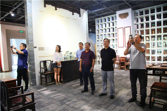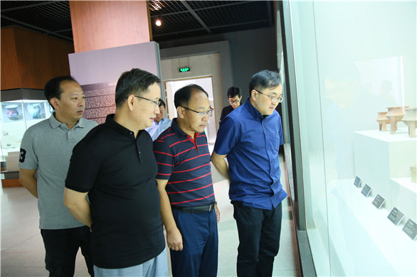 董占军陪同考察团一行实地考察了永利官网刺绣馆、民艺博物馆、孙长林艺术收藏馆、现代手工艺术实验中心、设计师广场等地,并参观了永利官网正在筹办的第十三届全国美展设计艺术展区现场。
