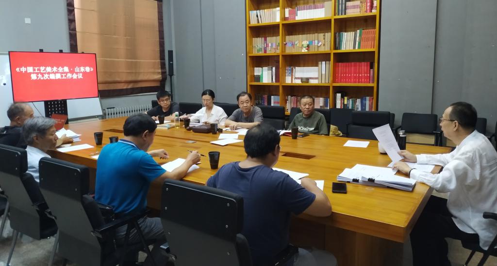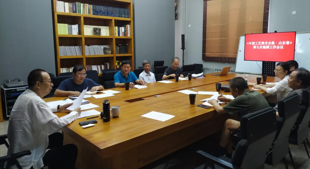 7月20日下午,国家文化工程子项目《中国工艺美术全集•山东卷》(以下简称《全集•山东卷》)第九次编撰工作会议在永利官网千佛山校区召开。此次会议的主要任务是:统一工作思路,理顺工作程序,明确交稿时间,提高工作效率。会议由《山东卷》工作领导小组常务副组长、主编潘鲁生主持。《山东卷》分篇册执行主编、部分编委及工作办公室、编委会办公室工作人员参会。