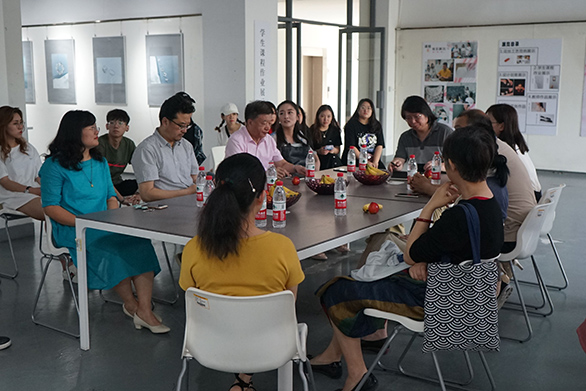 与会专家在会谈中,肯定了授课教师的工作付出,对于展览的成功举办表示祝贺。专家从不同层面谈了今后的意见和建议。党委宣传部部长康健讲到,学校要大力支持鼓励基础教学,多方联动,为学生打造精品课程。教务处处长孙磊讲到,这样一个基础课的训练,对材料的认识,对手工艺的感知,对传统手工艺的集合,都会有明确的学习目标,学生在这样的课程当中一定收获很多,对水平的提高有极大的帮助,他谈了三点体会,一是高水平的老师才能培养出高水平的学生。二是传统工艺美术回归生活,回归到更多元化的一个角度,通过和审美的高度结合,更多地走向多元化和多样化。三是打造高水平的课堂,打造高水平专业,以学生为中心,以成果产生为导向,支持学院打造金课。团委书记邹晓红希望进一步加强沟通,通过创意市集的活动和课程结合,给学生提供资金支持,将学生的作品放在学校创意市集上售卖,助力传统工艺发展。网络信息管理中心主任韩青讲到,希望以后能够和现代手工艺术学院进行合作,在专业上进行专业性录制和编辑,制作精品课堂让更多人去了解手工艺。