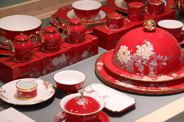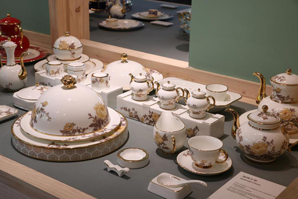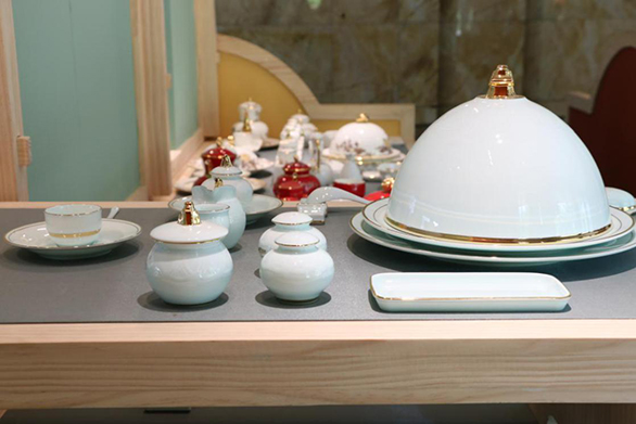 本次展览单独设立国家礼仪中的食具板块,共展出了6组国瓷,他们分别承担过2016年在杭州G20峰会宴会、2017年福建厦门金砖国家峰会元首欢迎晚宴、上合组织青岛峰会国宴等国家重要宴会。