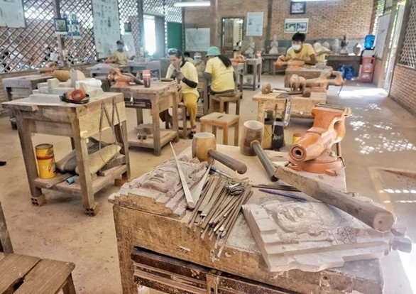柬埔寨吴哥艺术工坊的石雕工艺