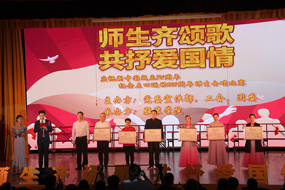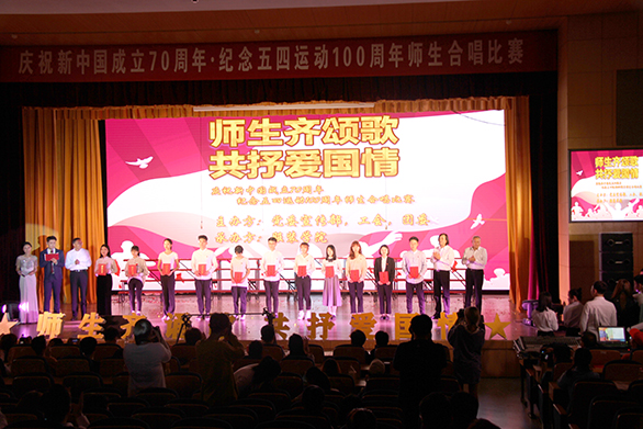 5月14日,由党委宣传部、工会、团委主办,服装学院承办的“师生齐颂歌 共抒爱国情”——yl8cc永利官网庆祝新中国成立70周年、纪念五四运动100周年师生合唱比赛在长清校区学术报告厅举行。党委书记何思清、院长潘鲁生、党委副书记苗登宇、纪委书记苗新民、副院长韩世春出席本次活动,全校13支代表队参加比赛。
