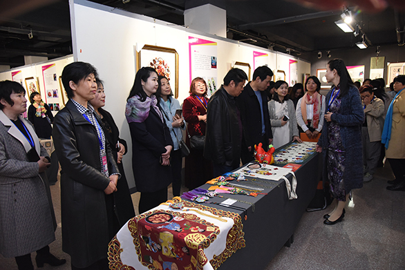 本次展览共遴选出200余件(套)优秀作品参加创作成果展。涵盖经典的鲁绣绣画、鲁锦,更有种类丰富的衍生品设计,包括服装、家居、饰品、包袋等类别。学员们热情的向领导们介绍自己的从艺经历、技艺特色和代表作品。王尚对学员的优秀作品以及衍生品开发设计表示肯定,并提出在传承技艺的同时,需要关注生活,关注现代人的审美,做一些贴近生活、符合市场需求的产品,使非遗技艺变成源头活水,成为社会发展中不可或缺的组成部分,并在此基础上不断提升设计意识、品牌意识、市场意识,创立自己的优秀品牌。学员们纷纷表示,要开阔思路,把非遗产业做大盘活。