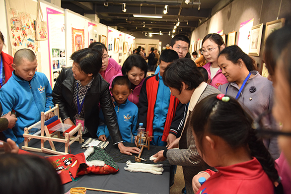 下午,济南市儿童福利院的部分儿童在老师的带领下来到学校参观本次织绣展览。传承人与孩子们进行了生动的互动,五彩缤纷、精彩纷呈的展品让孩子们流连忘返,纷纷赞叹传统手工艺的精妙。