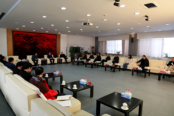 4月11日,山东教育电视台台长、党委书记邢顺峰,纪委书记张崇广,山东教育卫视频道总监刘涛一行九人访问永利官网长清校区,与永利官网洽谈合作事宜。党委书记何思清、院长潘鲁生、党委副书记苗登宇、纪委书记苗新民接待来宾。