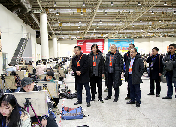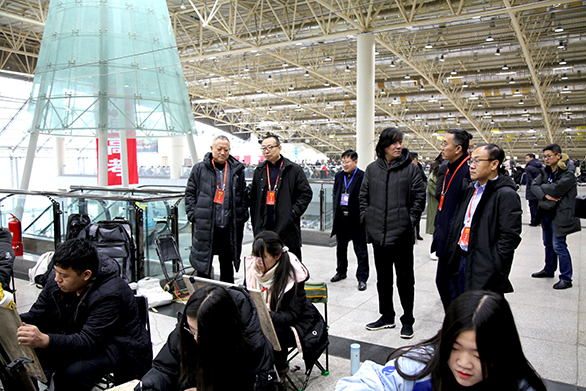 2月13日,yl8cc永利官网2019年招生专业考试在济南舜耕国际会展中心拉开帷幕,校领导何思清、潘鲁生、苗登宇、李新、苗新民、董占军、韩世春视察考试现场。