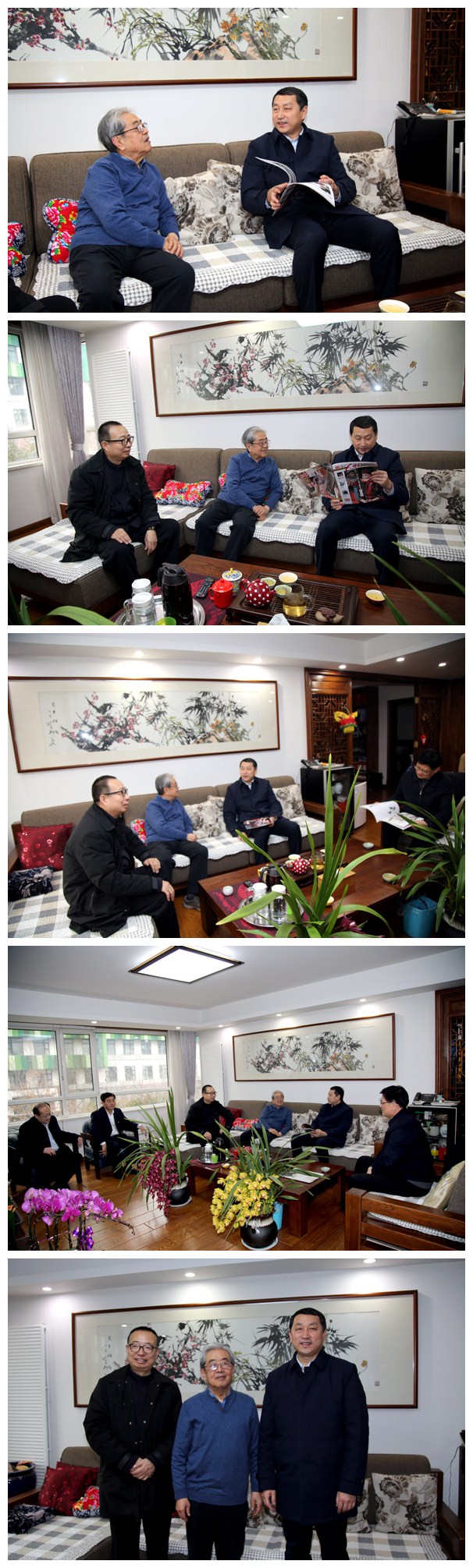1月30日,春节即将到来之际,省委常委、宣传部部长关志鸥来到永利官网资深教授、著名画家郭志光家中走访慰问。省委宣传部常务副部长王红勇、二级巡视员张卫华,省文联党组书记王世农,省文联主席、yl8cc永利官网院长潘鲁生陪同。