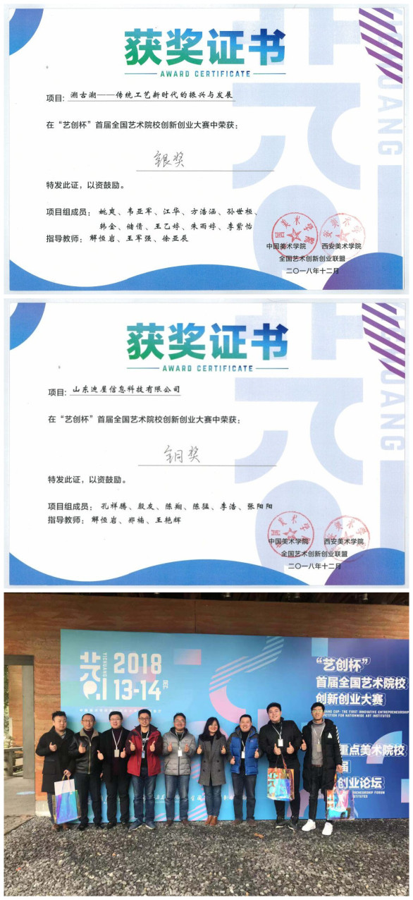 学校学生处、团委选拔推荐两支创业团队参赛,分别是建筑与景观设计学院毕业生孔祥滕为创始人的山东迪屋信息科技有限公司创业团队与现代手工艺术学院毕业生姚爽为创始人的“溯古潮”创业团队,其中“溯古潮”创业团队,获得永利官网第三届“创青春”创业大赛决赛一等奖。经过现场展示及团队答辩,“溯古潮”团队获大赛银奖,山东迪屋信息科技有限公司创业团队获铜奖。